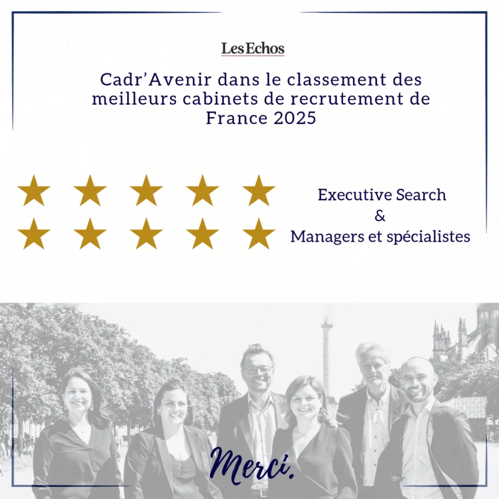 Pour la 7ème année, Les Échos nous distinguent dans leur classement des meilleurs cabinets de recrutement en France.